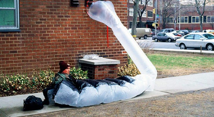 “Parasitism is described as a relationship in which a parasite temporarily or permanently exploits the energy of a host,” Rakowitz says, in introducing paraSITE. This temporary and transportable shelter for the homeless is dependent on the outtake duct of a building’s heating, ventilation, and air-conditioning system for its form and source of heat. paraSITE is a conspicuous social protest, not a long-term solution to homelessness. “It is very much an intervention that should become obsolete,” Rakowitz says. “These shelters should disappear like the problem should. In this case, the real designers are the policymakers.”